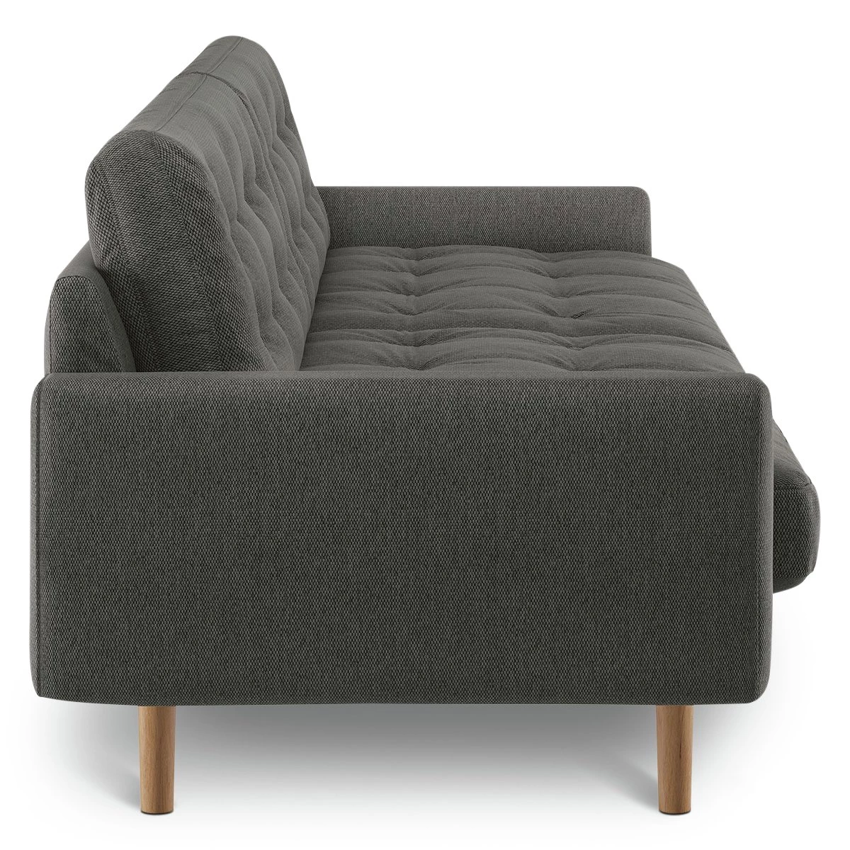 Made in Italy, the Fenner charcoal fabric 3 seater sofa has slender cushioned arms and soft, feather-wrapped fibre seat and back cushions. The sumptuous sofa combines a classic box frame with loose covers for a softer look and has button detailing on its cushions, which acquire a relaxed, comfortably lived-in look over time. Exclusive to Habitat, the sofa's deep seat and thin frame create a large seating area; available in a choice of fabrics, colours, sizes and configurations, the design offers luxe for less.