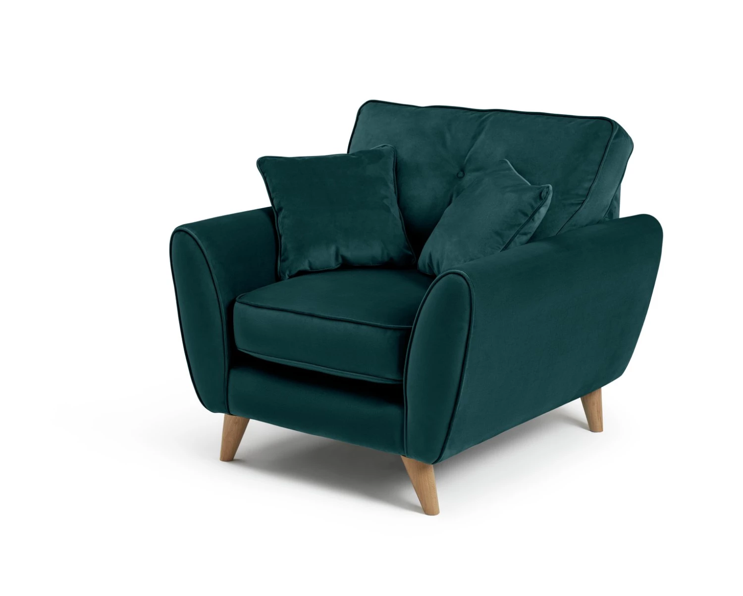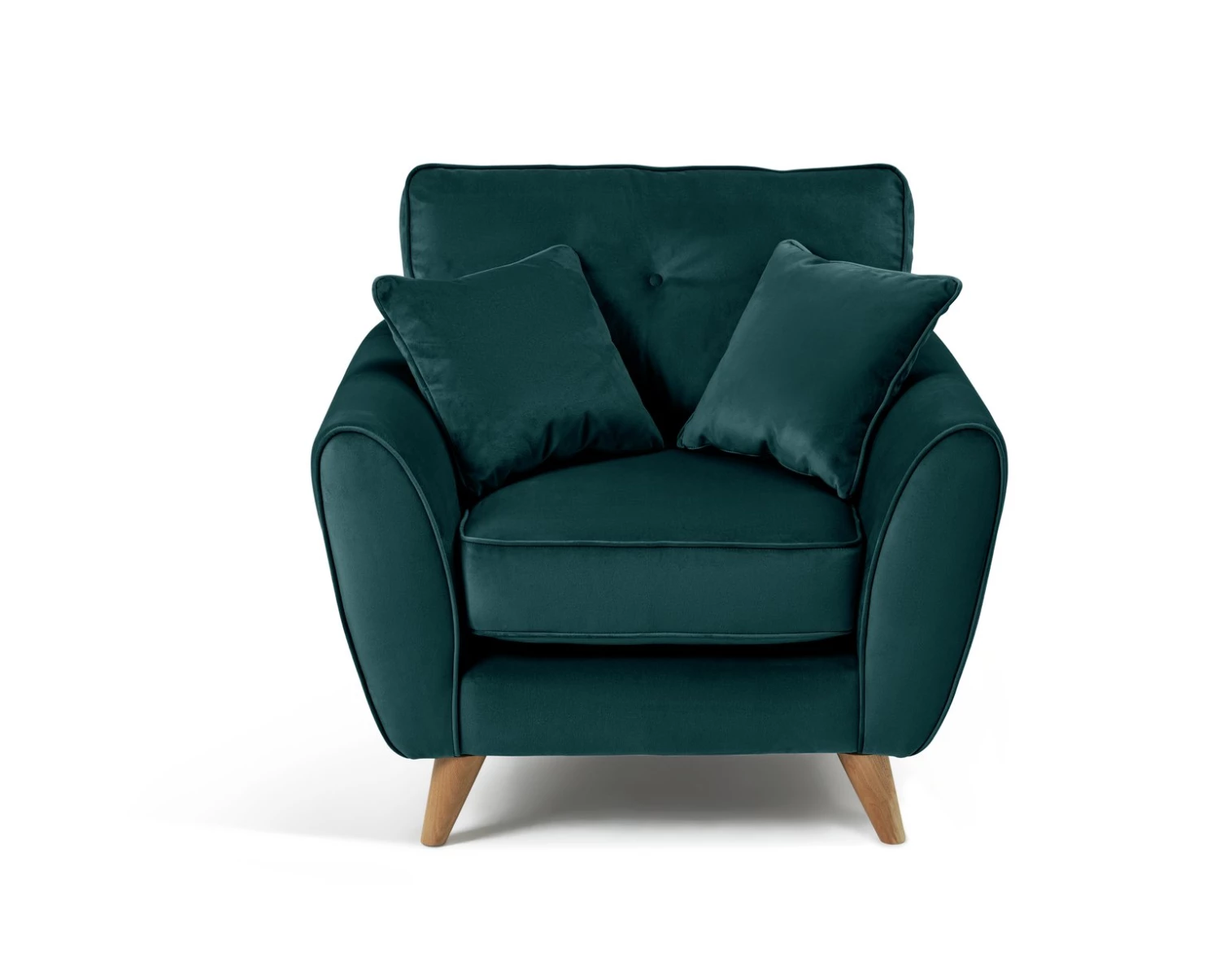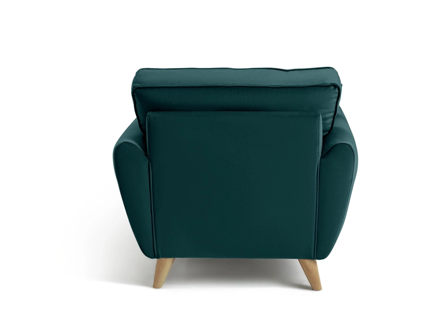 Elegant and snuggly soft, that's Isla. Our irresistible armchair is designed with mid-century modern comfort in mind. Just look at those clean curves and traditional button details. Retro, right? While tapered, slim wooden legs lend a contemporary edge. Upholstered in 100% velvet, its smooth texture and tranquil teal tones bring a luxe touch to your living room. A sofa that feels just as good as it looks.
