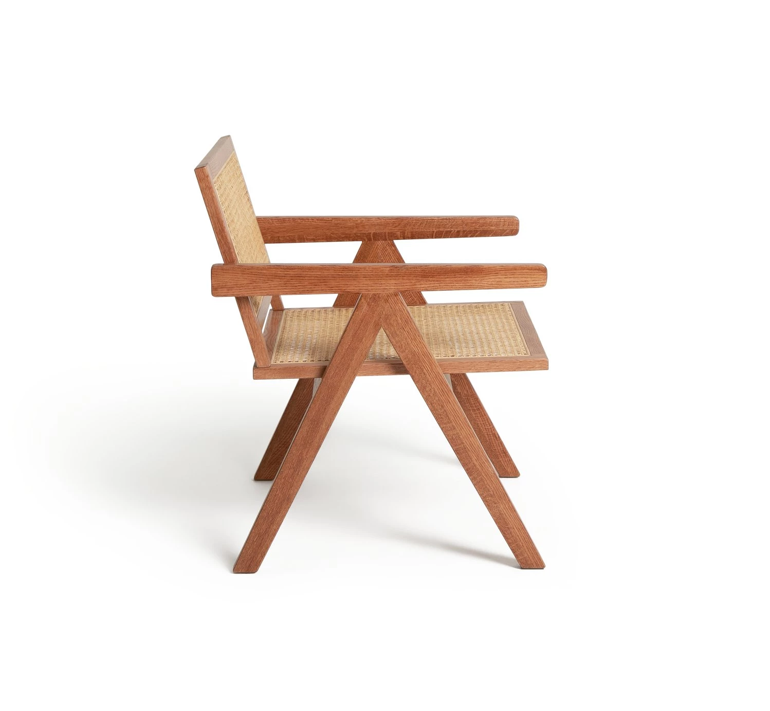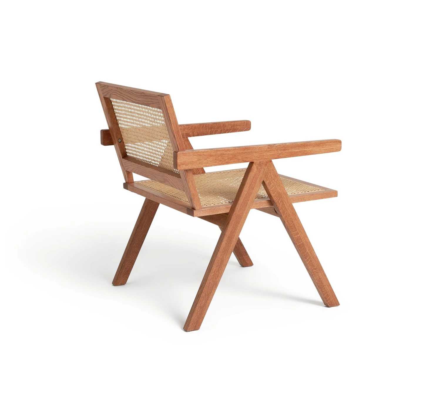 Indulge in design with Raffles. Handcrafted from 50% rattan and 50% oak, our wooden armchair brings 100% luxury to your living room. A striking, contemporary chair with intricately woven panels. Add a touch of texture and warmth to your space. Stylishly supportive with its sloping back, soft rattan and smooth solid wood arms, it feels as good as it looks. Sit back, settle in.