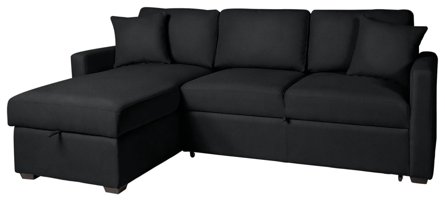 Smart lines, simple styling and handy storage space. There's a lot of reasons to love Reagan. This corner sofa bed from Habitat has a left-hand chaise design, ideal for lounging. It makes a great divide between the lounge and kitchen of an open floor plan.