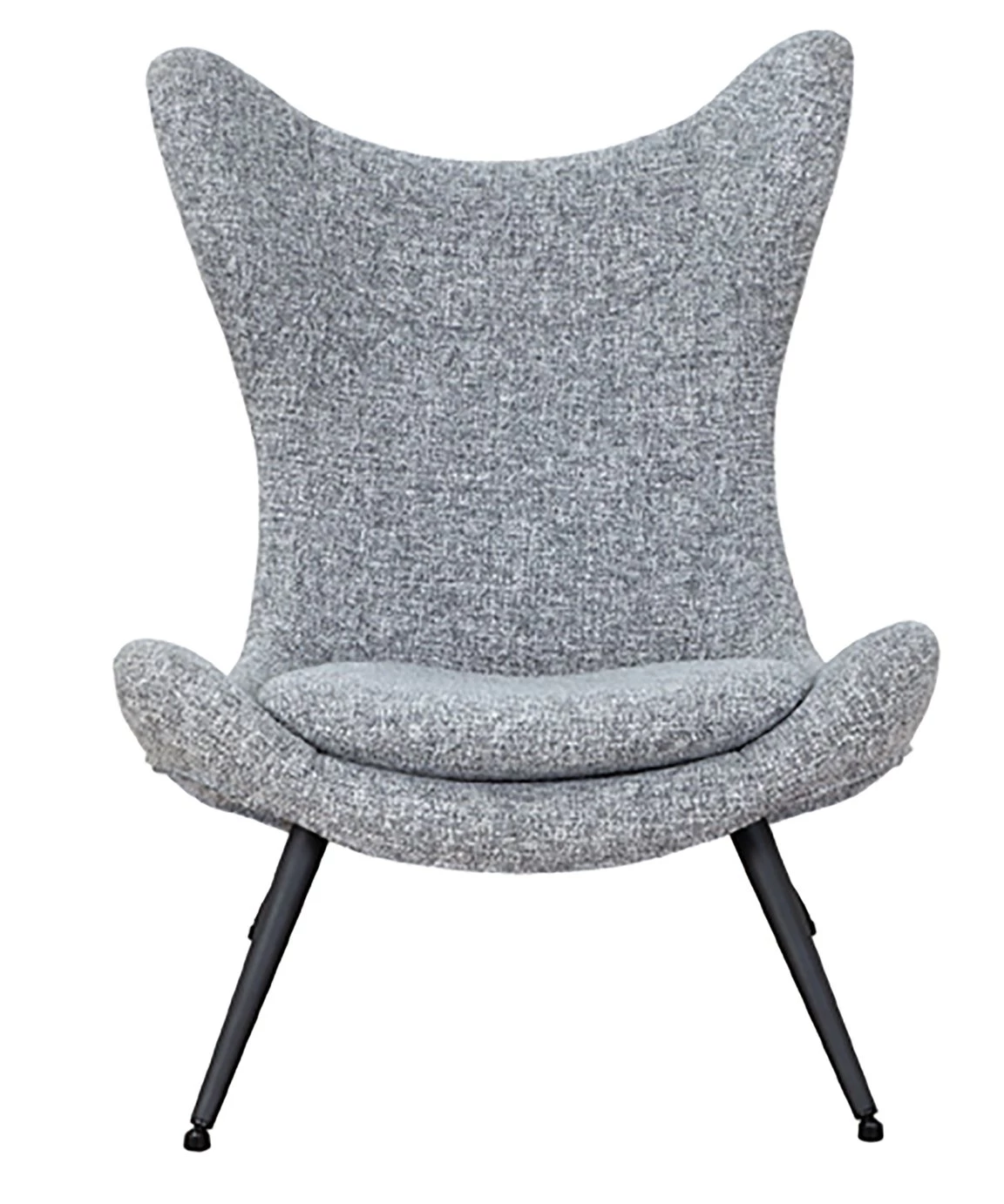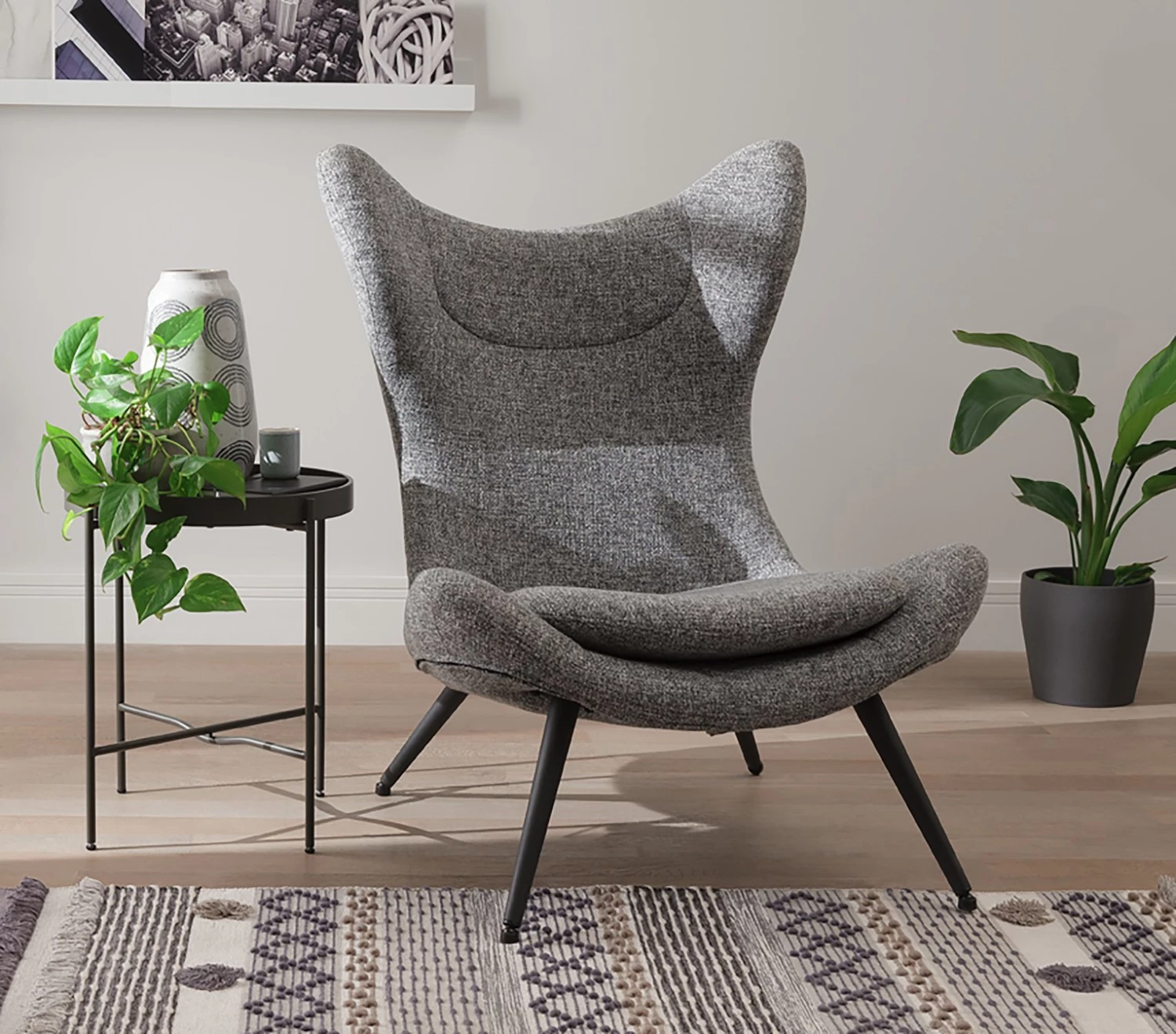 Kick back in style. The sophisticated Robbie armchair is right on-trend. Upholstered in soft grey fabric and elevated on sturdy but slender black legs, it's an accent piece through and through. With its tall, winged back, Robbie's silhouette is effortlessly handsome. Position Robbie in your best reading corner with a real page-turner and relax.